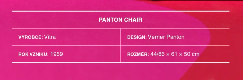 Ikonickou židli vyráběnou z jednoho kusu plastu, která nasbírala mnohá designová ocenění a nachází se ve sbírkách významných muzeí, vytvořil v šedesátých letech známý designér Verner Panton se značkou Vitra.