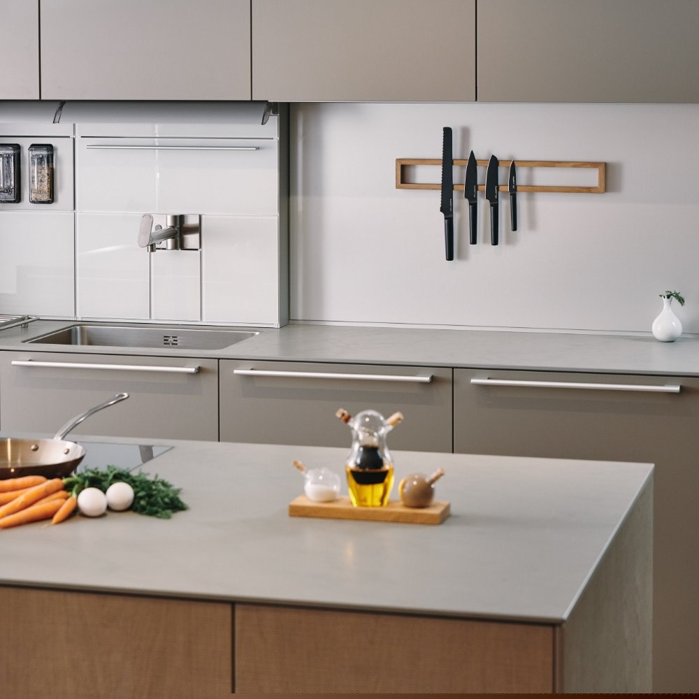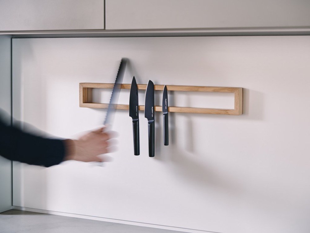 Při navrhování produktů myslíme na vše. Chceme, aby naše výrobky oslovovaly především ty, kterým není lhostejný prostor, v němž žijí, mají rádi věci při ruce a rozhodně jim není cizí smysl pro vtip. Všechno začalo magnetickým setem na kávu, kde lžička drží přesně tam, kde má. Tak vznikl nápad dělat inovativní věci, jejichž součástí bude magnet a magnetický držák na nože se sám nabízel. Ovšem jak něco tak profláknutého pojmout skutečně originálně? Unikátnost tohoto držáku spočívá v jeho transparentnosti, díky němuž bude skvěle vypadat na jakémkoliv povrchu. Navíc je dřevo k nožům velmi přátelský materiál. Na zeď se dá přidělat pomocí magnetických vrutů, a jeho povrch se tak bude snadno udržovat.