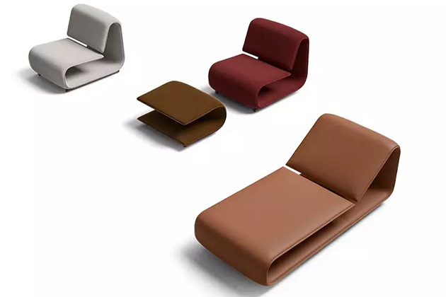 Clip je navržena na základě jednoho zásadního principu: navrhnout podstatu. Čalouněný kus nábytku, který je navržen tak, aby vydržel v průběhu času, díky popruhům, které se proplétají v pevném vnitřním rámu, poskytující potřebnou podporu, zatímco elasticita zajišťuje maximální pohodlí. Zúžený profil a tenké švy podél okrajů zvýrazňují extrémní lehkost forem, čímž se každý kus mění v sochu, kterou lze přizpůsobit jakémukoli prostoru.