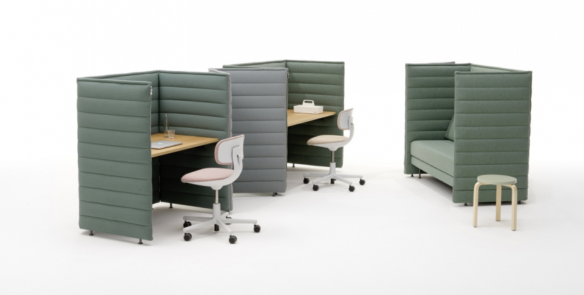 Archetypální pohovku Alcove Sofa vyvinuli Ronan a Erwan Bouroullecovi a od uvedení v roce 2006 se tento kus s extra vysokou zádovou opěrkou a postranními panely stal synonymem pro moderní a přívětivé kancelářské prostředí. Nový systém Alcove Plus vychází ze schopnosti této pohovky vytvořit jakousi místnost v místnosti a bere tento nápad o krok dál: nábytek funguje jako dělící příčka s mnoha možnostmi konfigurace. Pomocí zipů se snadno přidělá paraván a spojí jednotlivé pohovky. Uživatelé mohou Alcove Plus využít k tomu, aby dali svému okolí najevo otevřenost k interakci nebo naopak touhu po samotě a soustředění. Nová řada Alcove nabízí flexibilní a kvalitní mikroarchitekturu v otevřených interiérech a umožňuje vytvořit výjimečné kancelářské prostředí rychle a snadno a bez nutnosti zasahovat do struktury budovy.-60c33deb960da_630x318.jpg)