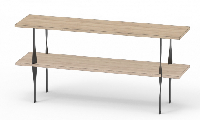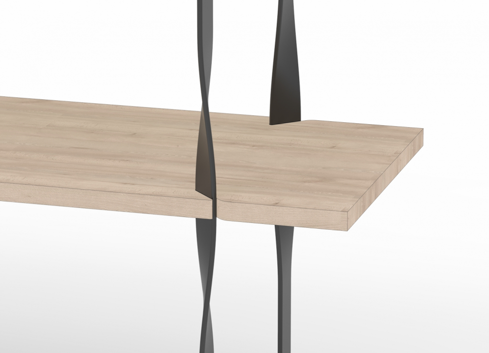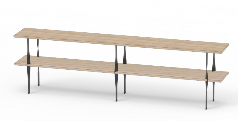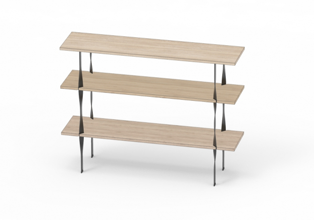 Tagliatelle je unikátní, variabilní regál, který může být sedátkem, botníkem ale i knihovnou. Je vyroben bez použití spojovacího materiálu, nenajdete na něm žádné vruty, kolíky ani šrouby. Využívá rotační tvar ocelových pásů v kombinaci s gravitací a vytváří tak pevné a stabilní spojení,“ vysvětlují Eduard Herrmann a Matěj Coufal. Tagliatelle propojuje tvrdost surové oceli s měkkostí masivního dřeva. „Povrch polic můžeme dle potřeby ošetřit voskem, olejem nebo mořidlem, pásovou ocel potom šelakem nebo antikorem proti rzi. Dalším povrchovým úpravám dle vaší fantazie se meze nekladou, do it yourself,“ vybízejí designéři.
