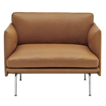 Křeslo z kolekce Outline (Muuto), design Anderssen & Voll, kůže, ocel, dřevo, HR pěna, peří, cena 90 870 Kč → www.designville.cz