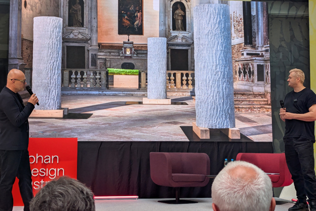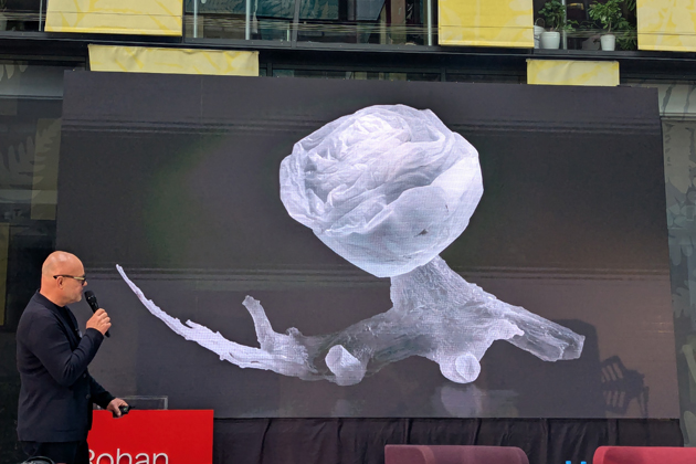 Rony Plesl v Karlíně představil unikátní sklářskou technologii, kterou společně s mistrem Jiřím Šínem vyvíjí v Bělé pod Bezdězem. Tato technika tavení do uzavřených forem nemá ve světě obdoby a umožňuje vznik monumentálních plastik o hmotnosti stovek kilogramů. Vystoupení Plesla propojilo architekturu, řemeslnou dokonalost a osobní vizi – tvořit velké skleněné sochy jako přirozenou součást veřejného prostoru.