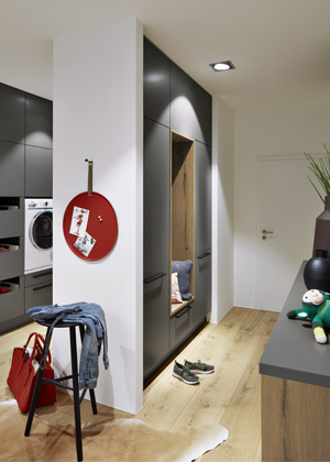 Pokud i vy toužíte po jednotné podobě nábytku napříč vaším domem či bytem, není nic snazšího než designéry z Nolte Küchen nechat naplánovat také další části vaší domácnosti od obývacího pokoje přes dobře ergonomicky řešenou technickou místnost s prádelnou až po praktické šatny s mimořádně štědrou kapacitou úložných prostor, komfortní předsíň a domácí kancelář. Problém není ani koupelna, pro kterou v Nolte Küchen vyvinuli zvlášť odolnou kolekci Nolte SPA, která hravě zvládá i vyšší vlhkost.