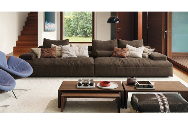 Materiál: kov a dřevo, výplň z polyuretanů různých hustot a peří, Dacron a snímatelný látkový potah v látce nebo kůži.