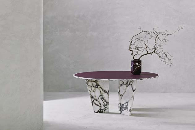 Věční spojenci luxusu mramor a kůže tvoří stůl Queen (Kreoo), který přitom díky jednoduchým liniím a odlehčené desce stolu nepůsobí zbytečně okázale. Navíc se tyto přírodní materiály skvěle doplňují, když navzájem zdůrazňují své senzorické vlastnosti – měkká a teplá kůže kontrastuje s chladným a tvrdým kamenem. Harmonie! Design Christophe Pillet, cena na dotaz. → www.kreoo.com