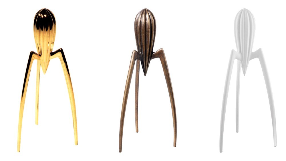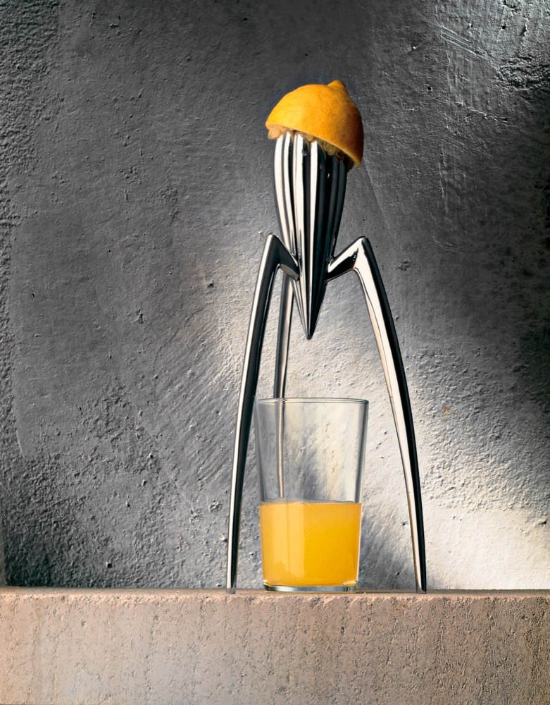 Objednal si prý kalamáry, a než mu jídlo přinesli, nakreslil na papírové prostírání několik skic předmětu, který ze všeho nejvíc připomíná mimozemské plavidlo. Prostírání složil do obálky a poslal do společnosti Alessi, s níž v té době spolupracoval. Tam rychle pochopili, že tohle bude pecka, a pustili se do výroby. Přestože je Juicy Salif ne zcela praktický, vysloužil si obdiv celého designérského světa, do své sbírky ho zařadilo i Museum of Modern Art v New Yorku a dodnes je sériově vyráběn a prodáván.