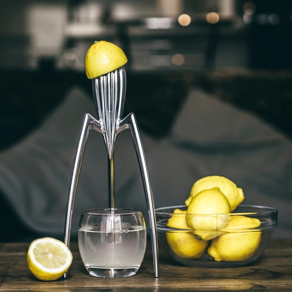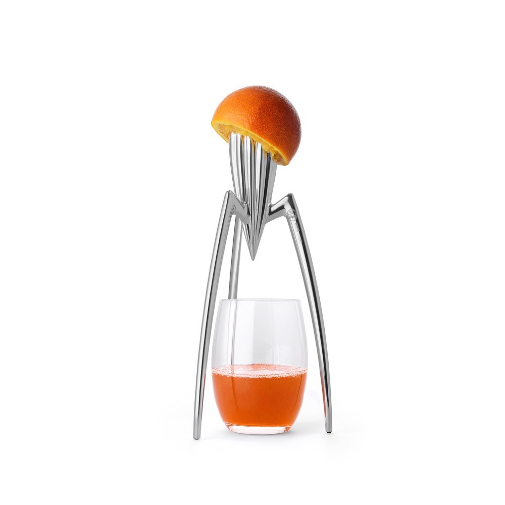 První návrh lisu na citrusy nakreslil francouzský designér Philippe Starck v restauraci na ubrousek.