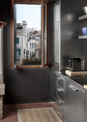Kuchyně Ego se stala srdcem soukromé rezidence francouzské galeristky, která si Benátky zvolila jako místo pro realizaci své osobní představy domova. Interiér je zaplněn objekty a stylovými prvky, jež odrážejí její vztah k umění i historii. Každá místnost si přitom zachovává autentické kouzlo starých Benátek — od restaurovaných dřevěných trámů a kamenných polic přes terakotové podlahy až po velký krb a detaily z foukaného skla.