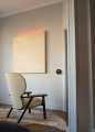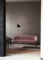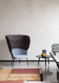Kovová základna je zde pojata jako výrazný grafický prvek – k dispozici je v černém provedení, broušeném bronzu nebo v zakázkových odstínech RAL. Vrcholem práce s objemem je verze bergère, volná interpretace historického křesla à oreillettes z 18. století. Vysoké opěradlo a velkoryse pojatá opěrka hlavy v makro měřítku proměňují křeslo v osobní zónu pro relaxaci a soukromí, umocněnou i akustickými vlastnostmi čalounění.