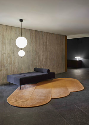 Meandrující textury a jemné reliéfy charakterizují koberec Giro (GAN), jehož hravost podporuje posloupnost křivek, které díky nepatrným tvarovým odchylkám vytvářejí optickou iluzi svinuté trubky.Koberce jsou vyráběny z panenské vlny speciální technikou ručního tuftování a dostupné jsou ve dvou rozměrech a třech barevných variantách. MUT Design, cena od 61 050 Kč
