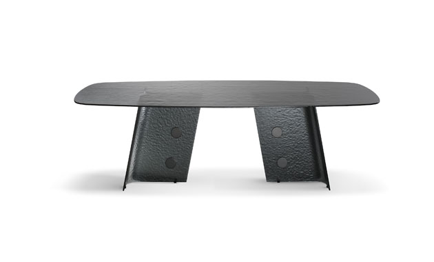 Název stolu Botón (Bonaldo) ve španělštině znamená „knoflík“ a odkazuje na pozornost přitahující kovové vložky použité na podnoží jídelního stolu. Jsou totiž svým materiálem, odstínem, tvarem i povrchem ve výrazném kontrastu s ostatními částmi stolu vyrobenými pouze z taveného tvrzeného skla...