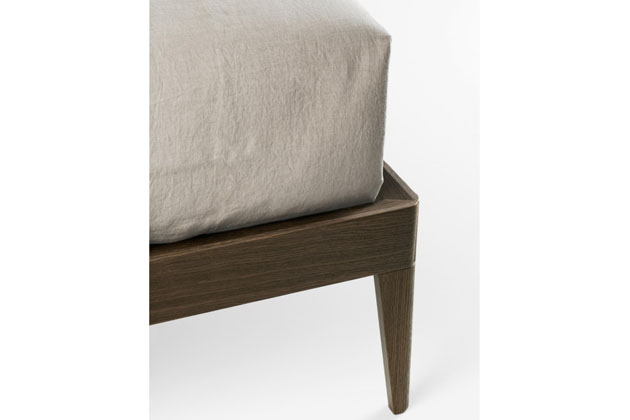 Rám postele je dřevěný nebo matně lakovaný, s bočnicemi v. 9 cm a stojí na dřevěných nohách ve stejné úpravě nebo laserem tvarovaném kovu. Plně polstrovaná verze má rám postele se bočnicemi stojícími na podlaze v. 28 cm, a lze do ní umístit úložný mechanismus, nebo s bočnicemi v. 15 cm na kovových nohách. Díky své transverzální osobnosti a kompaktním rozměrům se Nest krásně vejde do každé ložnice.