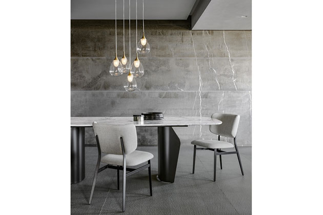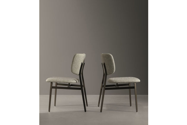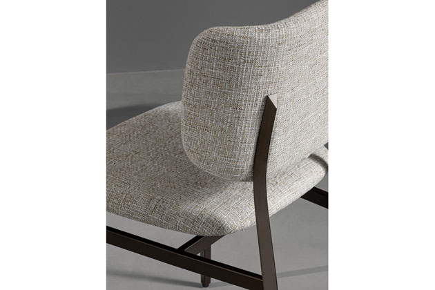 Design opěradla, po stranách mírně zakřivený, mu dodává přívětivý a pohodlný vzhled. Opěradlo a sedák jsou polstrované a čalouněné kůží, ekokůží nebo látkou.