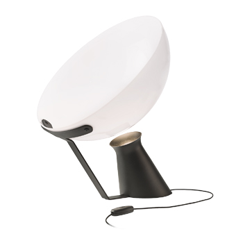 Stolní lampa Aida (Karakter), design Angelo Mangiarotti, opálové sklo, hliník, ocel, Ø 61 cm, výška 61 cm, cena 18 874 Kč, andlight.com