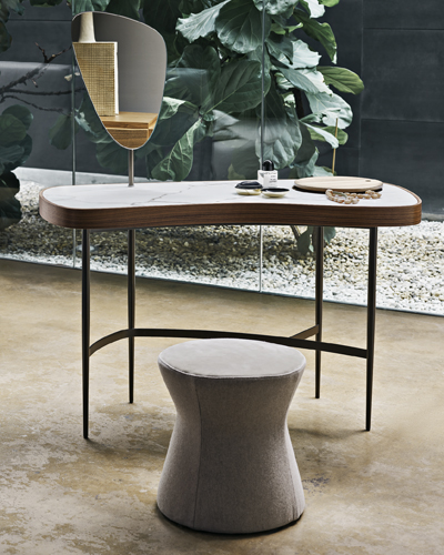 Foto: LemaPuf/stolek Drum (Lema), design Piero Lissoni, masivní ořechové dřevo, top: mramor, sklo,