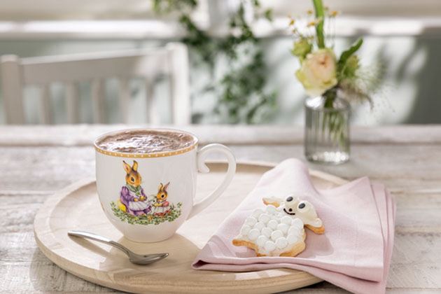 Čaj chutná nejlépe, pije-li se z krásného hrníčku. Letošní limitovaná velikonoční kolekce Villeroy & Boch s motivem dvou zaječic, babičky Emmy a vnučky Anny, vám bude zpříjemňovat každé ráno. Tento sběratelský kousek z prémiového porcelánu a odolné glazury je možné mýt v myčce nádobí nebo ohřívat v mikrovlnce. Hrnek o objemu 0,38 l pořídíte v prodejnách Potten & Pannen – Staněk nebo na www.pottenpannen.cz za 740 Kč, dostupné od 21. 2. 2022.