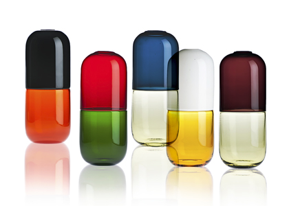 Váza Happy Pills (Venini), design Fabio Novembre, ručně foukané sklo, výška 33 cm, cena 47 570 Kč,
