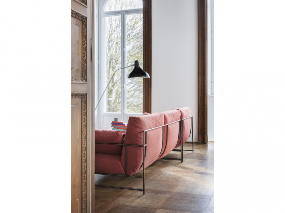 Rito má lehkou kovovou tyčovou konstrukci s čistými liniemi, které kontrastují s měkkými, velkoryse dimenzovanými polštáři, které tomuto modelu dodávají elegantní a útulný designový vzhled.