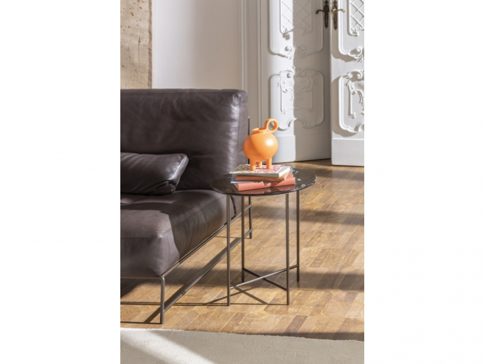 - volitelný kávový stoleček ø 30 cm s deskou pokrytou tmavě hnědou kůží