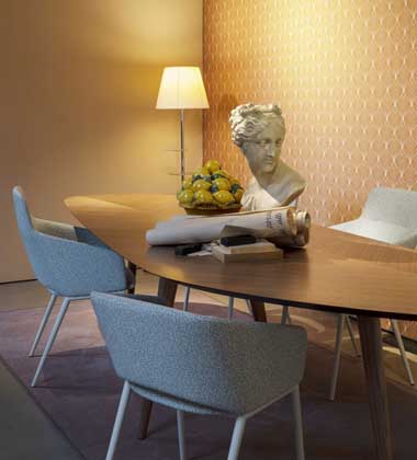 Nový model židle od Zanotta je designovým klenotem, který se vyznačuje především tvarem sedáku, jež přímo vyzývá k pohodlnému usednutí. Tento komfort je zajištěn díky celočalouněnému provedení sedáku, který je lehce zaoblený, přičemž si zachovává zřetelně definované linie, které jsou v souladu s designem podnoží. Celkový vzhled židle působí elegantně a moderně, a zároveň v sobě nese náznak jemné ergonomie, což ji činí ideální pro dlouhé hodiny strávené u stolu, ať už při práci nebo při jídle.