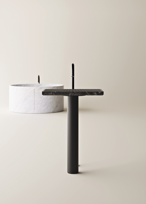 Ilbagnoalessi (Laufen), samostatně stojící umyvadlo z matné černé keramiky, 53 × 53 × 90 cm, cena 86 089 Kč → www.laufen.cz