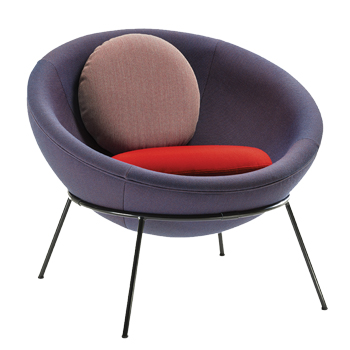 Foto: archiv značkyKřeslo Bowl Chair (Arper), design Lina Bo Bardi, podnož černě lakovaná ocel, textilní čalounění, 87 × 76 cm, cena 109 568 Kč → www.konsepti.com