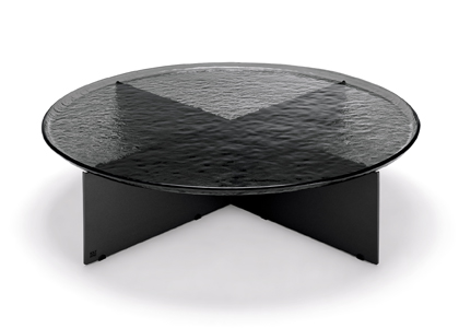 Konferenční stolek Kio (Rolf Benz) tvoří transparentní deska vyrobená z barveného roztaveného skla a podnož z černě lakované oceli. Struktura skleněného povrchu vizuálně rozpíjí konstrukci, která desku podpírá, a odlehčuje tak celkový výraz tohoto ryze elegantního doplňku. Design Sebastian Herkner, průměr 60 a 100 cm, cena na dotaz. → www.stopka.cz