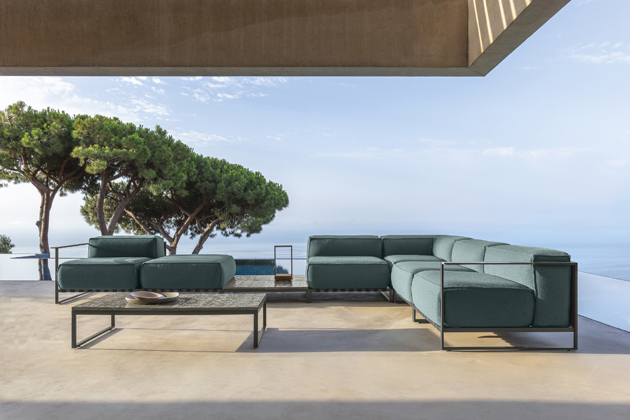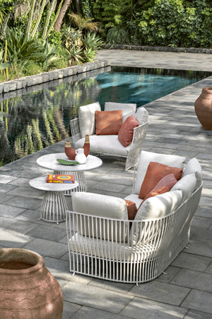 Foto: EthimoKřeslo, sofa a stolky Venexia (Ethimo), design Luca Nichatto, lakovaný kov, snímatelná outdoorová textilie, deska stolku keramika, cena křesla 82 000 Kč → www.puntodesign.cz