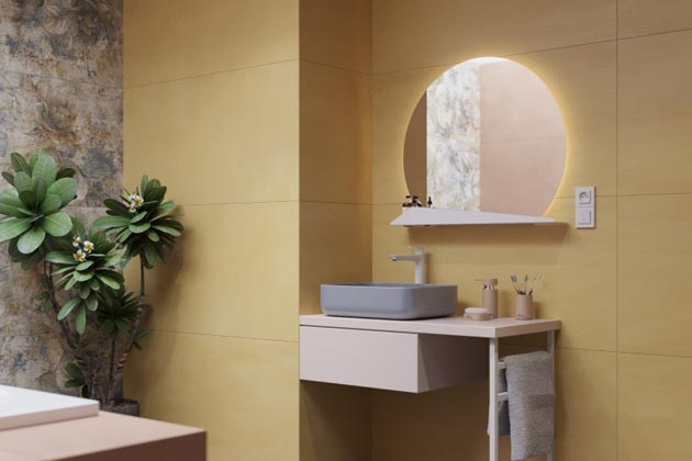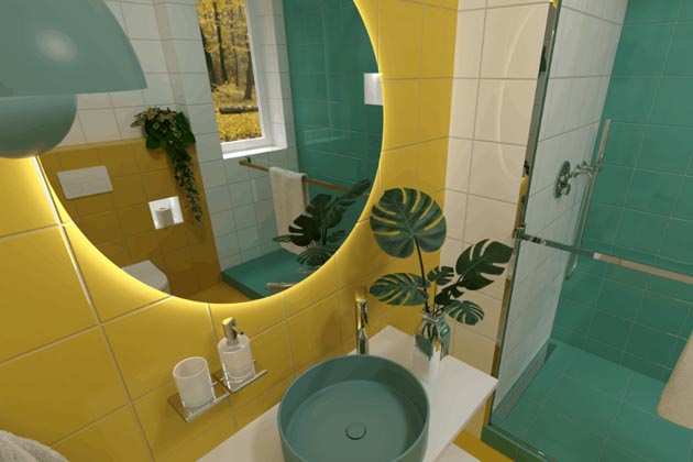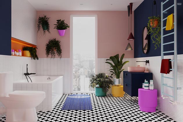 Vybočte z davu, pusťte do své koupelny pořádnou dávku originality pomocí sytých barev. Zařiďte svoji koupelnu v lehce avantgardním stylu, který se nedá přehlédnout. Výrazné barvy na stěnách v kombinaci s geometrickými tvary promění vaši koupelnu v osobitý prostor, plný kontrastu a dynamiky.