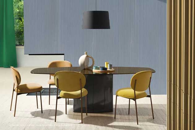 Blume 2950 osloví ty, kteří oceňují kombinaci formální jednoduchosti a výrazného detailu. Každý aspekt – od výběru kvalitních potahových látek až po jemné kovové povrchové úpravy – odráží důsledný přístup značky Pedrali ke kvalitě, udržitelnosti a designu s dlouhou životností.
