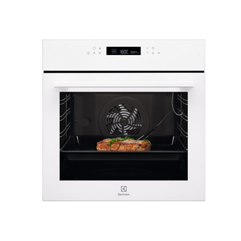 Vestavná horkovzdušná trouba EOE7C31V série 700 SenseCook (Electrolux), teplotní sonda pro sledování pokrmu uvnitř, LCD displej pro snadný přístup k přednastaveným receptům, automatické katalytické čištění při dosažení teploty 250 °C, rychlé zahřívání na požadovaný stupeň, cena 15 490 Kč, www.electrolux.cz