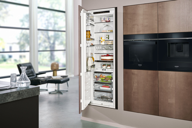 Foto: SiemensVestavná kombinovaná chladnička s mrazničkou KB96NADD0 (Siemens), o 45 % více místa pro uložení potravin oproti standardu, noFrost, hyperFresh – extra velká zásuvka pro ovoce a zeleninu, HomeConnect pro vzdálené ovládání, cena 46 990 Kč, www.siemens-home.bsh-grooup.cz