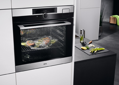 Vestavná parní trouba Steam pro 9000 STEAMPRO COOKVIEW (AEG), funkce Steamify pro automatické nastavení páry, vakuové vaření sous-vide, kamera CookView pro sledování mobilem odkudkoli, wi-fi pro bezdrátovou aktualizaci softwaru, cena 50 990 Kč