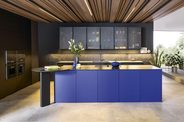 Experimentování s pro kuchyň netypickými materiály, ale i barvami patří k současným výrazným trendům, které se odrážejí i v odvážně zvoleném ultramarínovém odstínu, jenž německý výrobce next125 zahrnul do nové barevné palety. Impozantní dojem umocňuje možnost zkombinování s prosklenými skříňkami s jemnou strukturou → www.next125.com