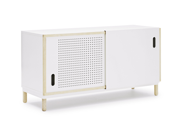Foto: Normann CopenhagenMinimalistická komoda Kabino (Normann Copenhagen), design Simon Legald, kombinuje lakovaný hliník a přírodní dřevo a představuje něžný industriální kousek, rozměry 61 × 114 × 42 cm, cena 25 471 Kč