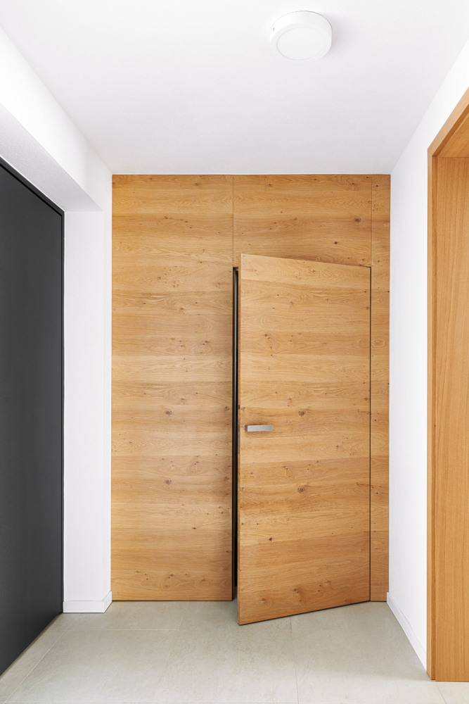 Zásadní je rozměr dveřního otvoru i navazující plocha. Do menších prostor pasují posuvné dveře. Vhodná jsou i křídla se skrytými zárubněmi a výškou až ke stropu – dokážou místnost opticky zvětšit. Ve větších prostorách vypadají skvěle dveře Woody s přidanou plochou zárubní. Naprosto jedinečné jsou pivotové dveře Axon v kombinaci s dělicí příčkou Digero, které umožňují rozdělit místnost bez ztráty světla. Důležitým parametrem je i charakter místnosti. Do ložnic a koupelen doporučujeme klasické varianty, posuvné či prosklené dveře pak spíše tam, kde nám nevadí nechávat otevřeno.