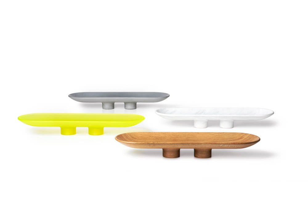 Na Designbloku představil designér Jan Čapek autorskou kolekci mís z kamene, taveného skla, betonu a ušlechtilého dřeva. Podlouhlý tvar skvěle funguje s proporcí většího stolu. Mísa nezasahuje do šířky. Ovoce se na ní nestohuje a je prezentováno způsobem, který dovoluje snadnější výběr. Vyzdvižením těla mísy nad desku stolu nezabírá i přes svoje rozměry místo a celá plocha stolu zůstává použitelná.
