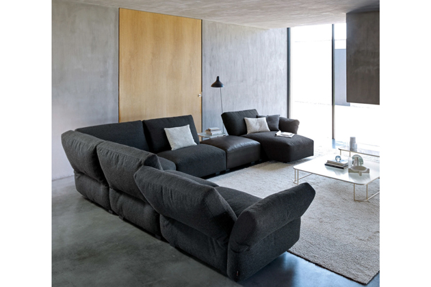 Flexibilní modularita, existuje i rohová varianta, pouf a chaise longue.