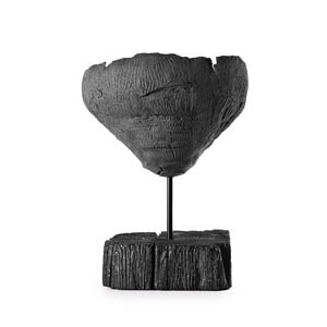 Terra Vita (Fractum Oject), objekt inspirovaný přírodou a starověkou keramikou, kamenina a podstavec ze starého trámu ošetřený tradiční technikou jakisugi, cena na dotaz → www.fractumobject.com