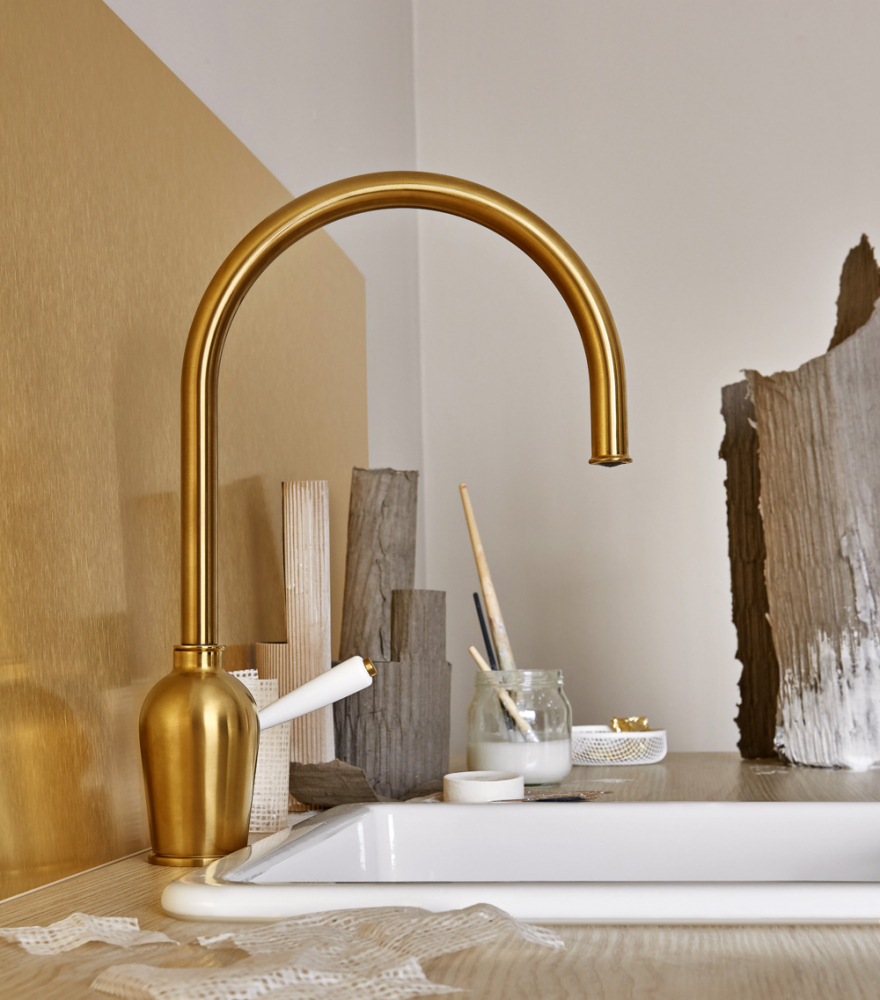 Kuchyňská mísicí baterie insjön (IKEA), mosazná, cena 1 990 Kč, WWW.IKEA.CZ