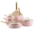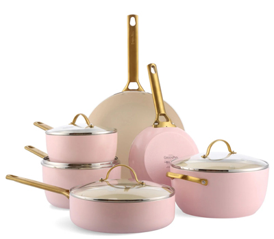 Foto: Potten & Pannen Sada nádobí (GreenPan) s nepřilnavým keramickým povrchem 10 ks, pastelově růžová, cena 9 999 Kč → www.pottenpanen.cz
