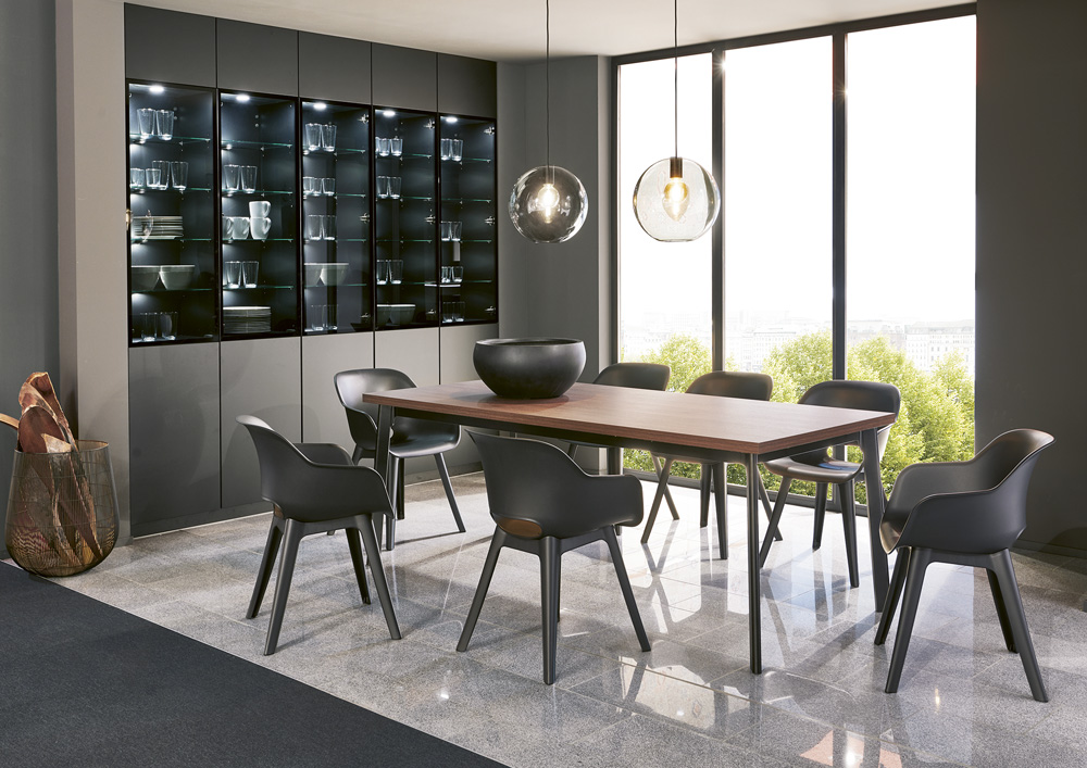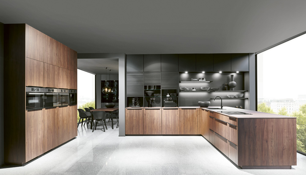 Díky všem těmto detailům není kuchyň na první pohled vizuálně oddělená od zbytku místnosti, nýbrž do něj přirozeně prorůstá, a přitom zůstává dokonale funkční. Pro všechny, komu připadají tmavé barvy odtažité, jsou tu sofistikované kombinace se dřevem, které vytvoří v místnosti zabydlenější a útulnější dojem, aniž by rezignovaly na vysoký styl.