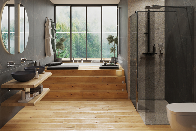 Tendenci současných koupelen bych ve zkratce popsal jako lapidární přirozenou útulnost. Lapidárností míním jednoduchost, elementárnost, což představuje tendenci nepoužívat nadbytečné dekorování či členění v rámci jednotlivých ploch stěn či podlahy. Stírá se rozdělování mezi tzv. dekorem a základem, plocha se nedělí barevnými či dekorovanými pruhy. Také samotné spáry se co nejvíce schovávají, minimalizuje se jejich šířka, tónují se tak, aby byly co nejméně znatelné. Formáty se zvětšují a ztenčují. Přirozeností je myšlena nenásilnost, nekomplikovanost. Je zde tendence přiznání přírodnosti, původu a charakteru použitých materiálů a snaha o minimalizaci syntetických materiálů. Keramika je keramikou. Proto jsou nyní tak populární koupelny s fragmenty přírody, flóry.
