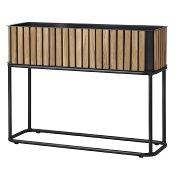 Květináč ze série Combine (Cane-line), hliník, teakové dřevo, 83 × 28 cm, výška 62 cm, cena 15 991 Kč, www.cskarlin.cz