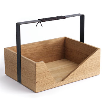 Foto: The Oak ManOrganizér Carrie (The Oak Man), dubové dřevo, kov a kůže, 26 × 33 × 25 cm, cena 4 385 Kč, www.milky.cz
