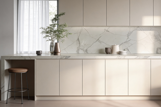 Hlavními prvky kuchyní 2026 jsou přírodní povrchy a uklidňující paleta barev. Hřejivost tmavého dubu, ořechu nebo kartáčovaného dřeva se skvěle kombinuje s odstíny béžové, kávové či šedozelené. Mramor, keramika a matné pracovní plochy dodávají prostoru hloubku a noblesu.