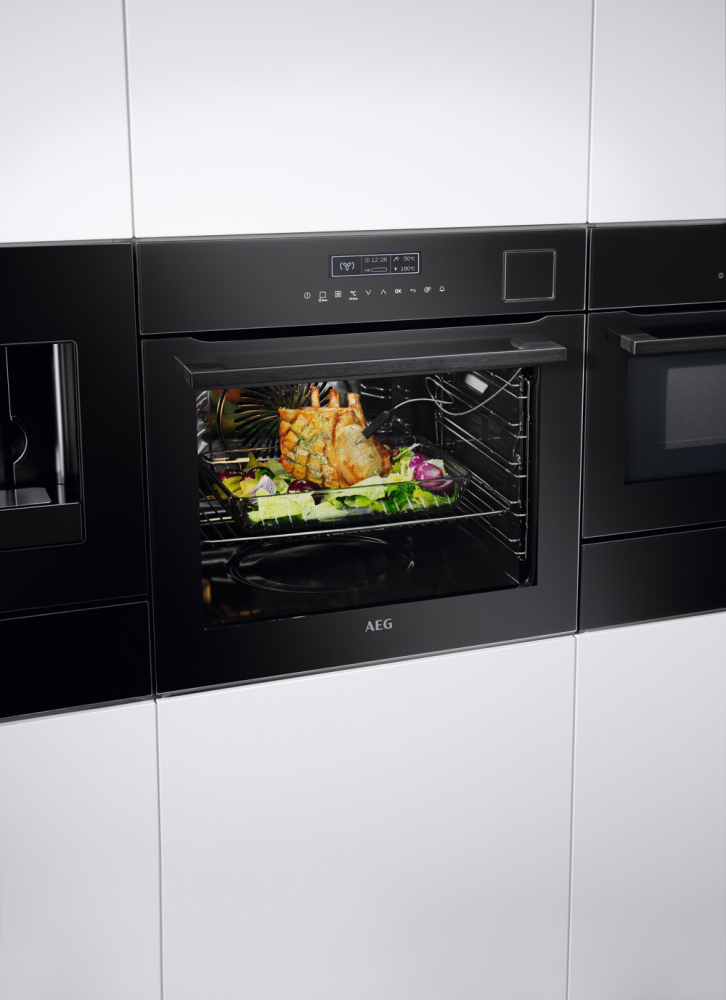Inteligentní technologie dovolují například ovládat troubu i na dálku, třeba předehřát troubu ještě před tím, než přijedete domů. Nemusíte také každých pět minut chodit otvírat troubu a píchat do masa vidličkou. Inteligentní trouba vám sama ohlásí, že už je kuře hotové.