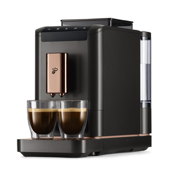 Foto: TchiboAutomatický kávovar Esperto2 Caffè (Tchibo), současná příprava dvou šálků, tlak 19 barů, objem nádoby na vodu 1,4 l, programovatelné množství nápoje, cena 7 999 Kč, www.tchibo.cz