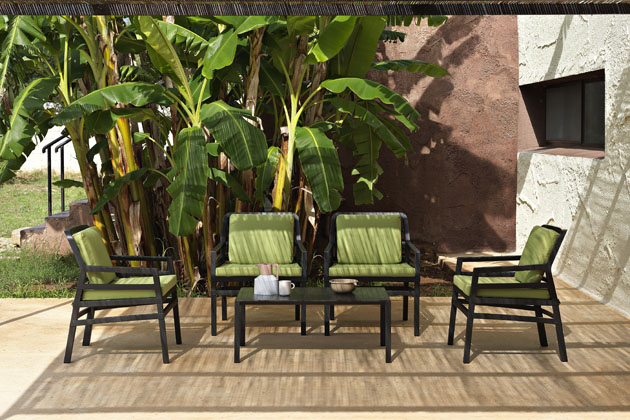 Kolekce nábytku Aria (Nardi), polypropylen se skelným vláknem, textilie odolná proti plísni, cena zahradního křesla 4 700 Kč, cena stolu, 2 700 Kč, www.casamoderna.cz